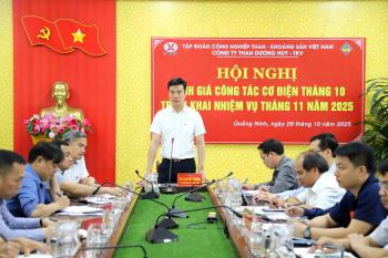 Ngày 29/10, Công ty Than Dương Huy - TKV đã tổ chức Hội nghị đánh giá công tác cơ điện tháng 10, triển khai nhiệm vụ trọng tâm tháng 11. Đồng chí Cao Việt Phương - Giám đốc Công ty chủ trì Hội nghị.