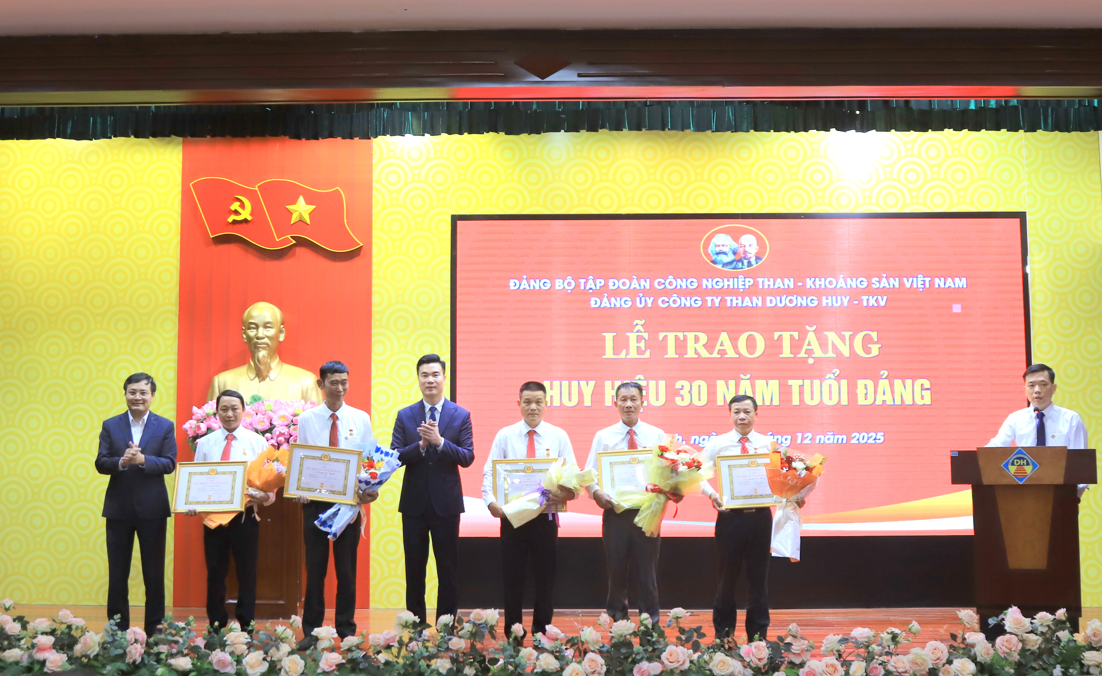 Chiều ngày 22/12/2025, Đảng ủy Công ty Than Dương Huy – TKV đã long trọng tổ chức Lễ trao Huy hiệu 30 năm tuổi Đảng và Hội nghị tổng kết công tác Đảng, các tổ chức đoàn thể năm 2025.