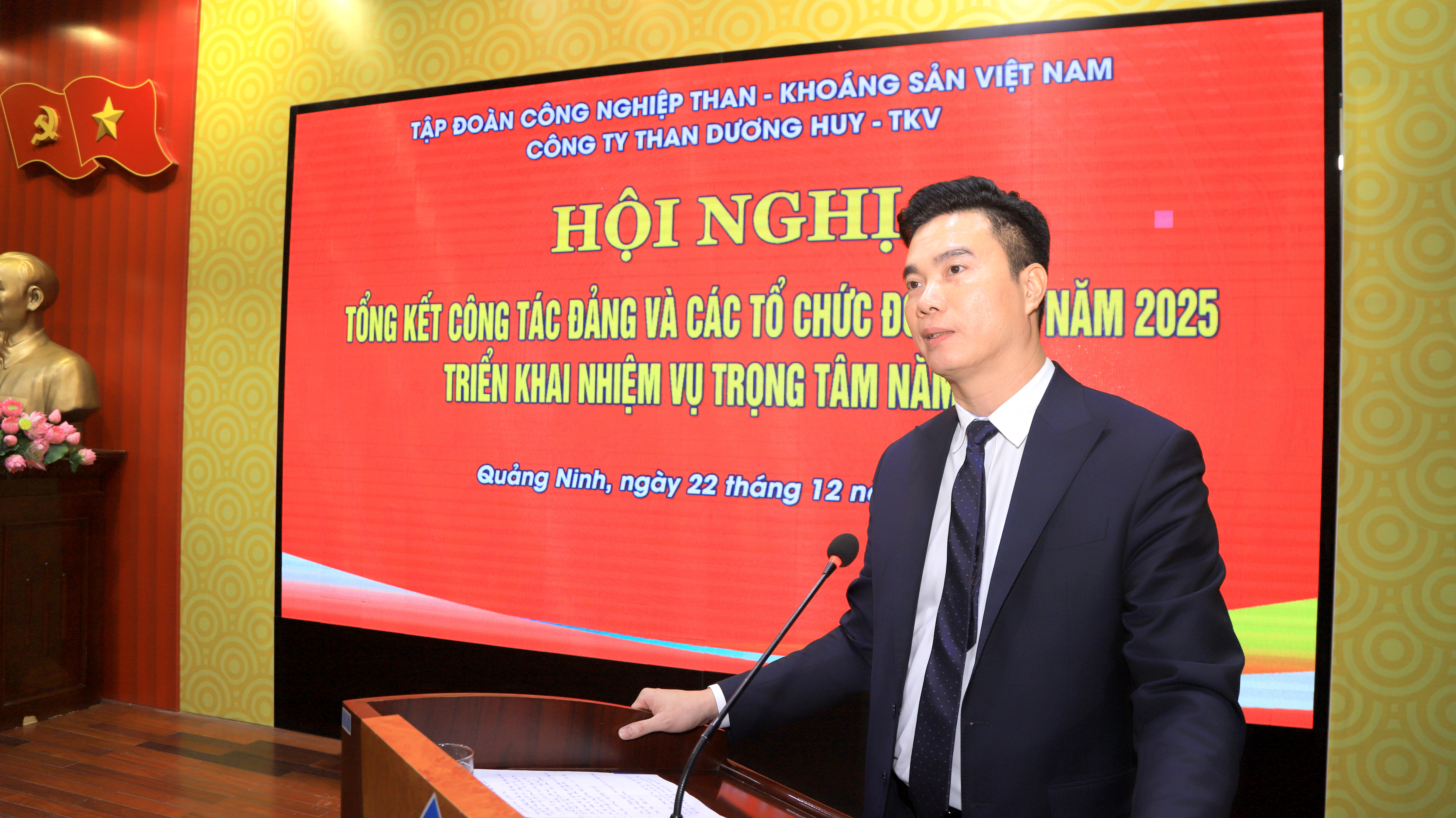 Năm 2025, dưới sự lãnh đạo toàn diện của Đảng ủy và sự phối hợp hiệu quả của các đoàn thể, Than Dương Huy đã vượt qua nhiều thách thức. Kết quả nổi bật là năm thứ hai liên tiếp Công ty giữ vững công suất thiết kế mỏ 2,5 triệu tấn than và gia hạn thành công Giấy phép khai thác đến năm 2038. Thành công trong công tác xây dựng Đảng và tổ chức Đại hội nhiệm kỳ mới đã tạo sự thống nhất cao về nhận thức, giúp đảm bảo đời sống người lao động với thu nhập bình quân trên 23,7 triệu đồng/tháng.