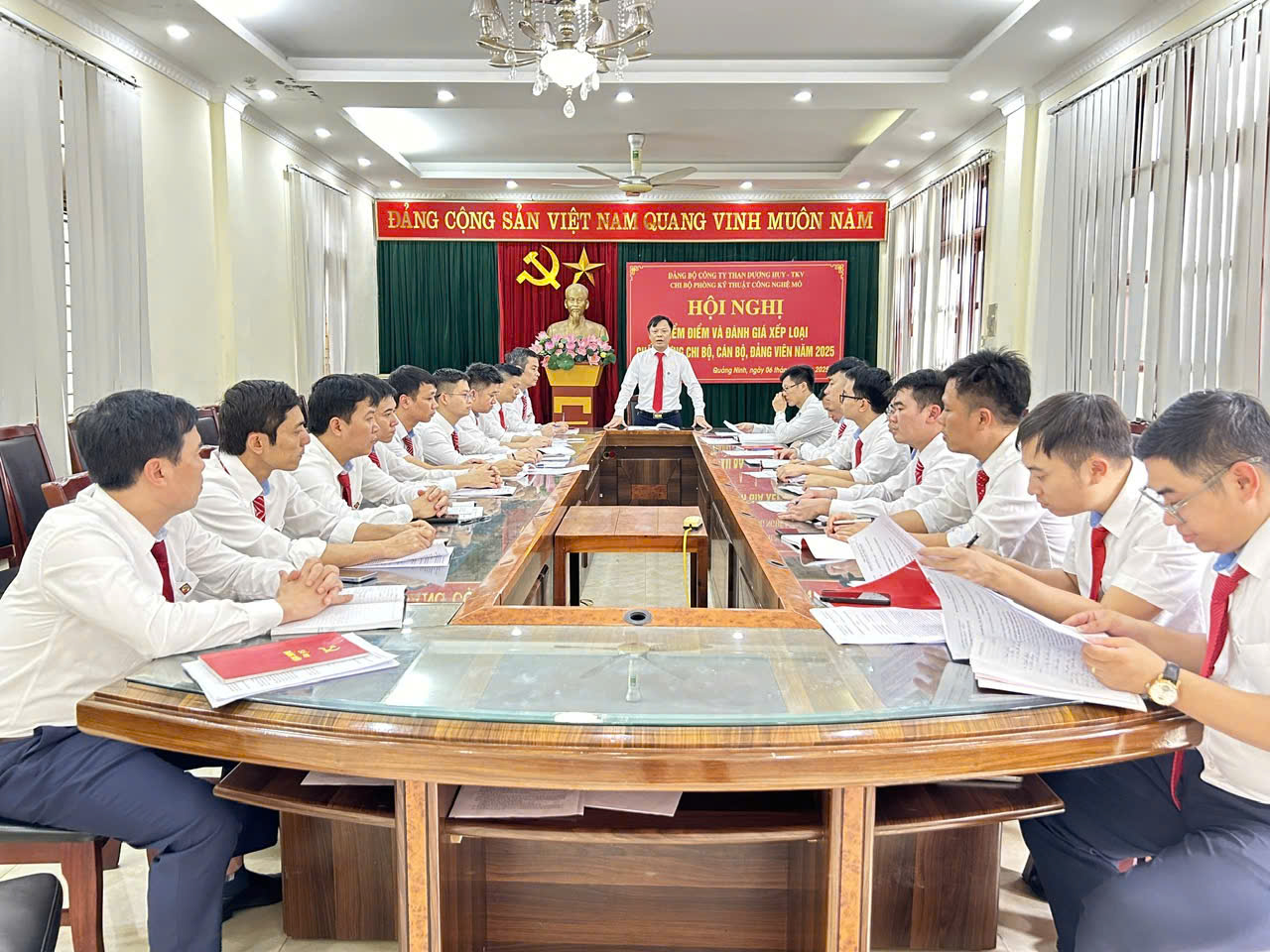 Thực hiện Kế hoạch số 36-KH/ĐU ngày 01/12/2025 của Đảng bộ Công ty Than Dương Huy – TKV, sáng ngày 11/12/2025 Ban Chấp hành Đảng bộ Công ty đã tổ chức Hội nghị kiểm điểm, đánh giá và xếp loại chất lượng tổ chức Đảng, đảng viên, tập thể và cá nhân lãnh đạo, quản lý năm 2025. Hội nghị vinh dự có đồng chí Lê Thanh Xuân – Ủy viên Ban Thường vụ Đảng uỷ, Chủ tịch Công đoàn Than – Khoáng sản Việt Nam, cùng đại diện Ban Tổ chức và Cơ quan UBKT Đảng uỷ Tập đoàn về dự và chỉ đạo.