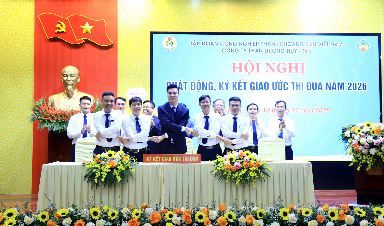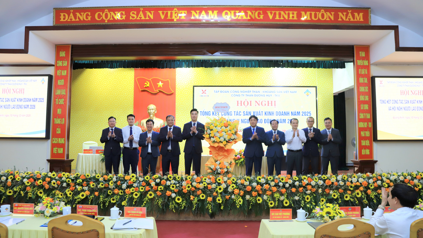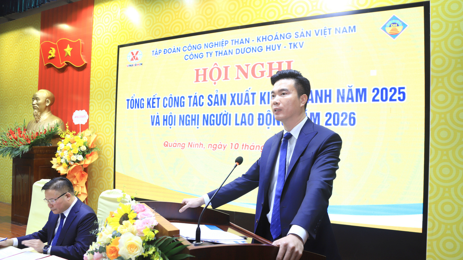 Phát biểu chỉ đạo tại Hội nghị, đồng chí Phan Xuân Thủy – Phó Tổng Giám đốc Tập đoàn TKV đánh giá cao, ghi nhận và biểu dương một năm hoàn thành xuất sắc toàn diện mọi nhiệm vụ của Than Dương Huy và đề nghị: Năm 2026, Công ty cần tập trung chỉ đạo quyết liệt 09 nhóm giải pháp trọng tâm để duy trì công suất thiết kế mỏ 2,5 triệu tấn hầm lò trong nhiều năm tới; Tăng cường quản trị rủi ro trong công tác quản lý để đảm bảo hiệu quả sản xuất kinh doanh; Tích cực triển khai Đề án chuyển đổi số, đẩy nhanh tiến độ phương án xuống sâu, tiết kiệm chi phí sản xuất trong giai đoạn chuyển giao giữa 2 tầng -100 và -250. Đặc biệt quan tâm cải thiện điều kiện, môi trường làm việc, đảm bảo an toàn để thu hút giữ chân người lao động; Tiếp tục duy trì đoàn kết nội bộ, phát huy truyền thống văn hóa thợ mỏ “Kỷ luật và Đồng tâm”, chăm lo đời sống người lao động chu đáo trong dịp Tết sắp tới, tạo nền tảng vững chắc khẳng định uy tín vị thế một Công ty sản xuất than hầm lò lớn của Tập đoàn TKV.