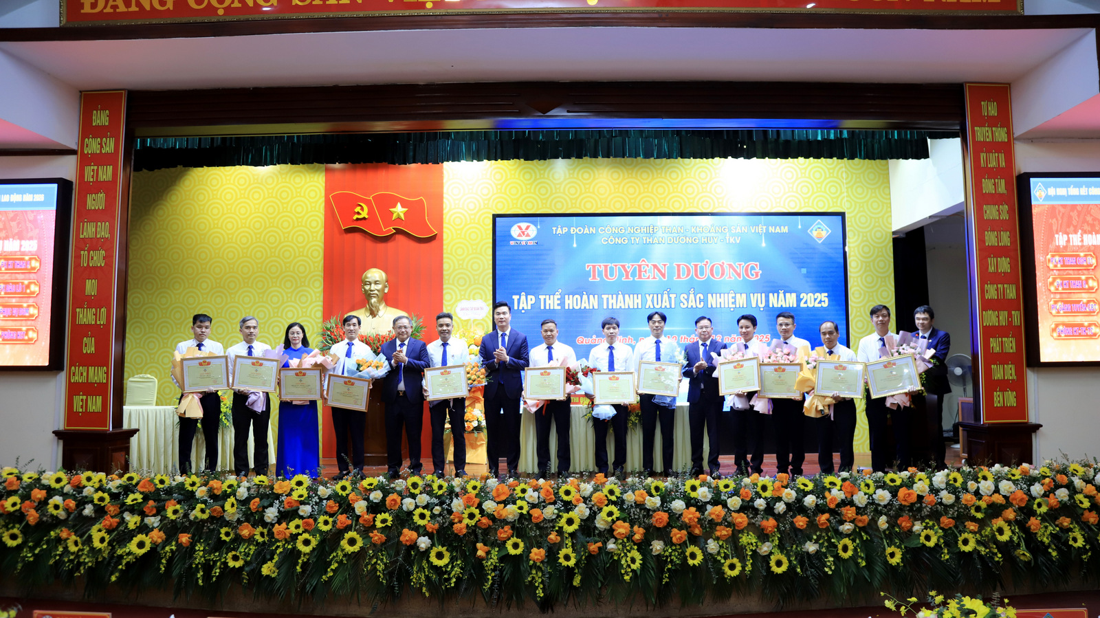 Theo Báo cáo kết quả SXKD qua hình ảnh video tại Hội nghị, năm 2025, Công ty Than Dương Huy - TKV đã vượt qua nhiều khó khăn thách thức để hoàn thành vượt mức nhiều chỉ tiêu kinh tế, kỹ thuật được Tập đoàn giao. Năm 2025 là năm thứ hai liên tiếp Công ty duy trì được công suất thiết kế mỏ với 2,5 triệu tấn than hầm lò. Đào mới 26.470 mét lò; Doanh thu 3,329 tỷ đồng, lợi nhuận 57,7 tỷ đồng; Thu nhập bình quân 23,7 triệu đồng/ng/th trong đó thợ lò thu nhập 27,7 triệu đồng/ng/th với gần 1800 công nhân thu nhập từ 300 triệu đồng/năm trở lên; Không để xảy ra tai nạn lao động và sự cố nghiêm trọng. Năm 2025 cũng ghi dấu một sự kiện đặc biệt khác là Công ty đã được điều chỉnh gia hạn Giấy phép khai thác khoáng sản số 2500 đến ngày 18/11/2038, đây là tiền đề quan trọng để phát triển mỏ bền vững trong giai đoạn tiếp theo.