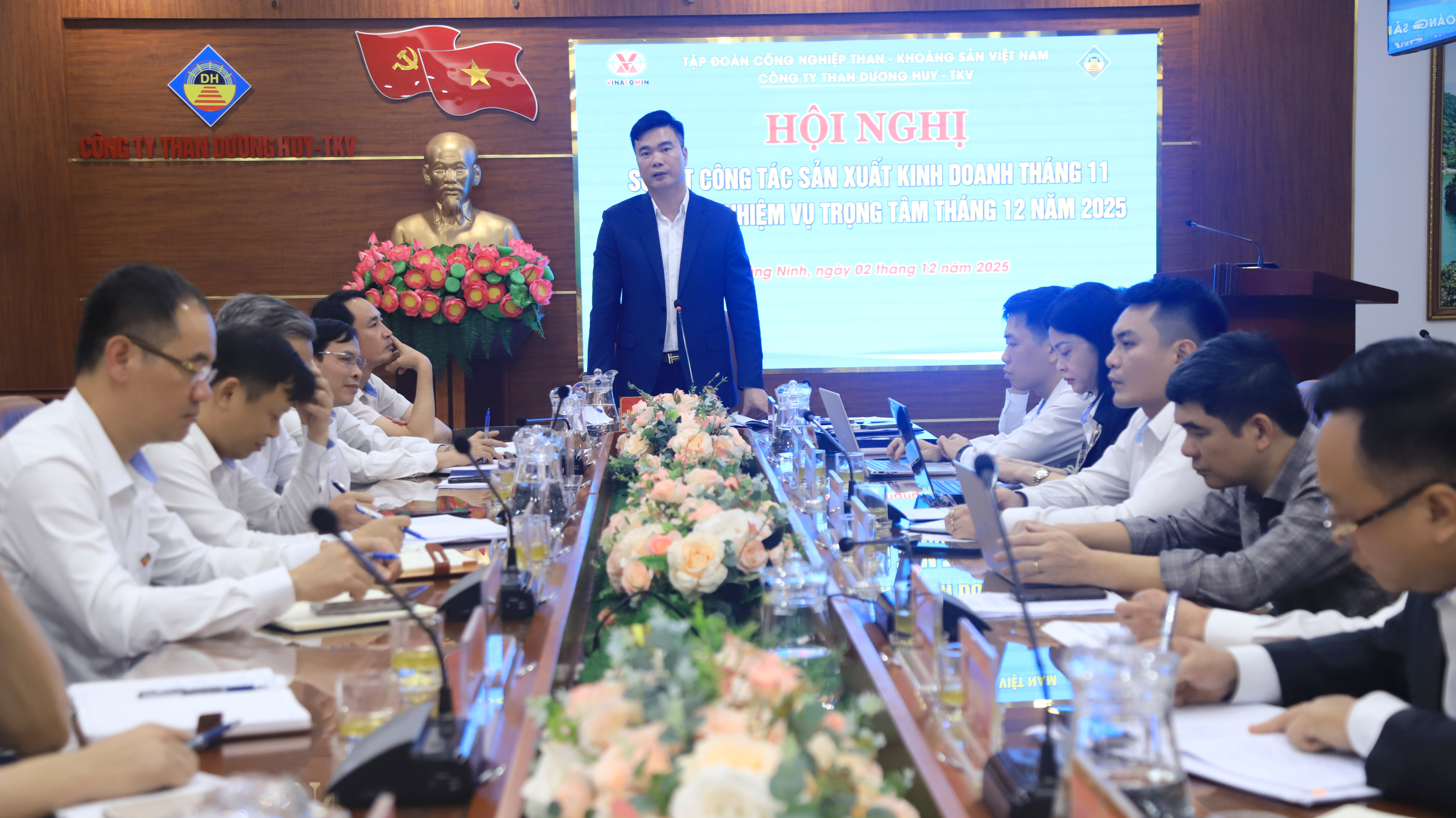 Về công tác xây dựng Đảng, tiếp tục duy trì giữ vững đoàn kết nội bộ; Tăng cường công tác tuyên giáo dân vận và nâng cao chất lượng sinh hoạt chi bộ; Xây dựng Văn hóa công sở và phát huy vai trò trách nhiệm của người đứng đầu; Triển khai kế hoạch Kiểm điểm đánh giá xêp loại tổ chức Đảng, đảng viên đúng quy định. Về sản xuất tháng 12, Giám đốc Công ty yêu cầu tập trung cao cho công tác an toàn, kiên quyết dừng sản xuất đối với các vị trí chưa đảm bảo an toàn. Điều hành sản xuất hợp lý trên cơ sở rà soát, cân đối các chỉ tiêu kinh tế để đảm bảo hiệu quả doanh nghiệp; Tích cực chuẩn bị các điều kiện kỹ thuật công nghệ, diện khai thác, hệ thống thông tải cho sản xuất năm 2026; Đặc biệt quan tâm triển khai các hoạt động chăm lo đời sống người lao động trong dịp Tết sắp đến; Huy động sức mạnh của cả hệ thống chính trị, quyết tâm hoàn thành toàn diện nhiệm vụ năm 2025.