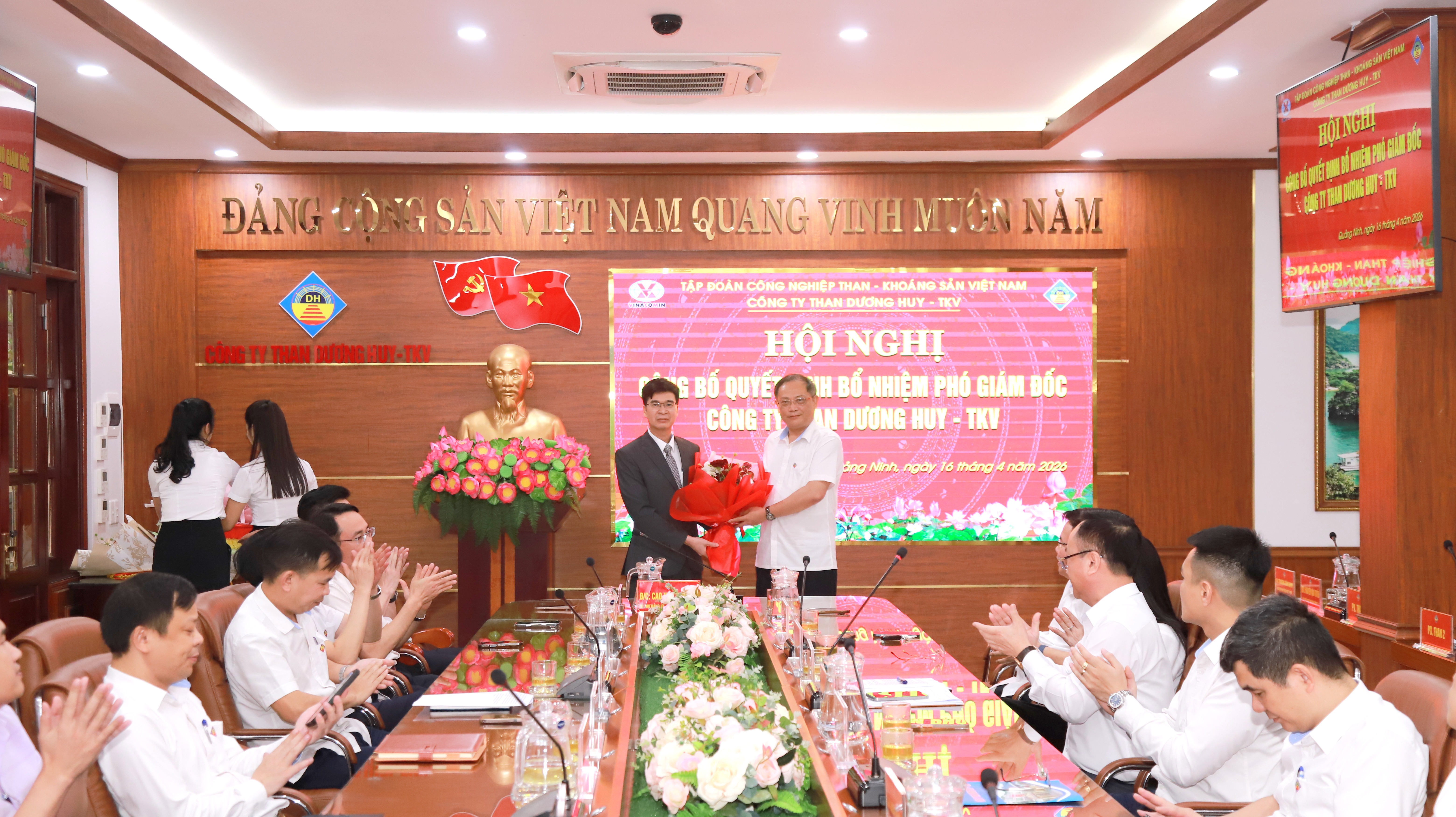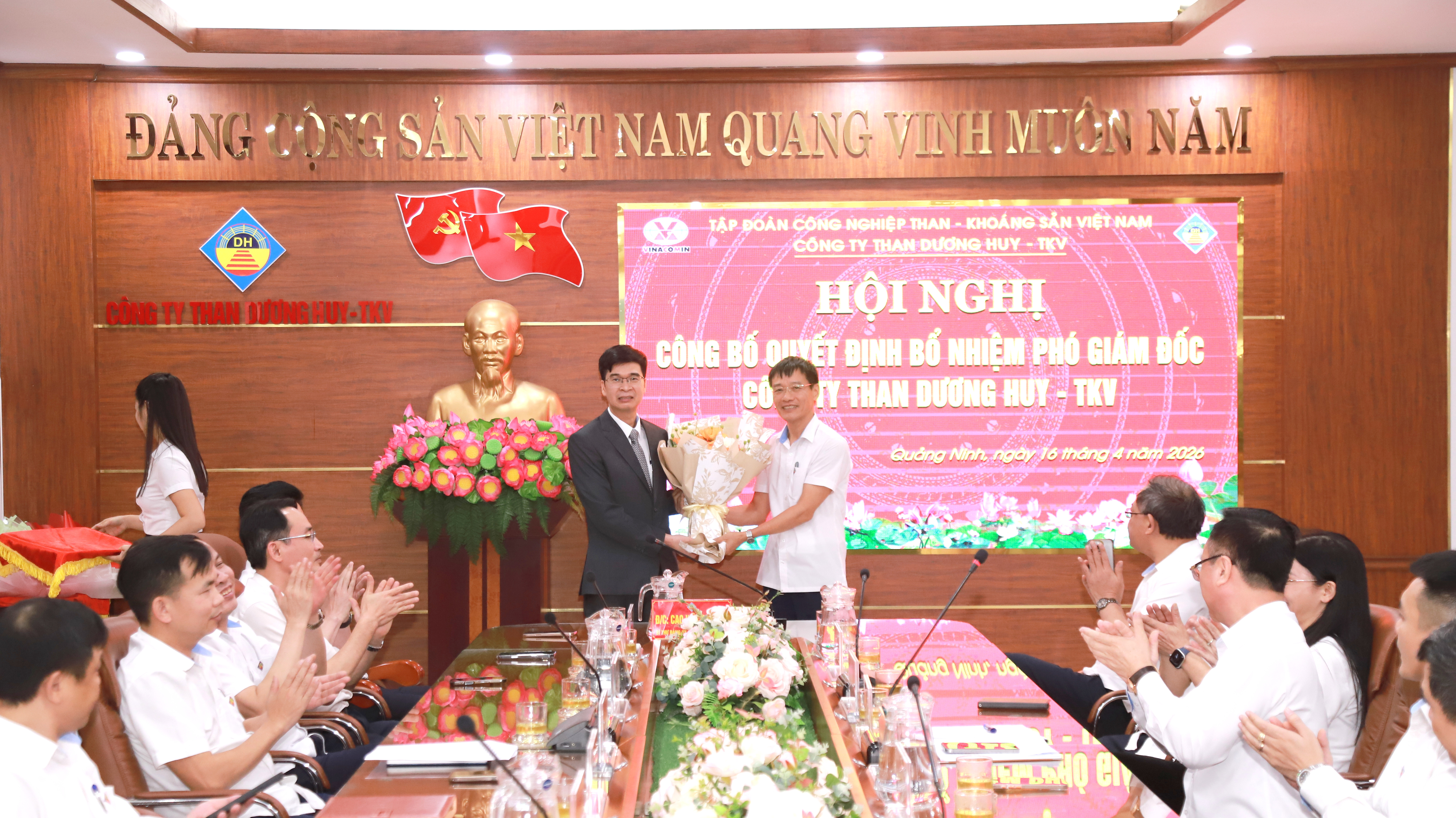 Thừa ủy quyền của Tổng Giám đốc Tập đoàn Công nghiệp Than - Khoáng sản Việt Nam (TKV), đồng chí Cao Việt Phương - Bí thư Đảng ủy - Giám đốc Công ty, đã trao quyết định điều động, bổ nhiệm đồng chí Trần Quang Vinh giữ chức vụ Phó Giám đốc Công ty Than Dương Huy - TKV kể từ ngày 14/4/2026. Trước đó, đồng chí Vinh giữ cương vị Trưởng phòng Kỹ thuật khai thác và xây dựng mỏ hầm lò thuộc Ban Kỹ thuật - Công nghệ mỏ TKV.