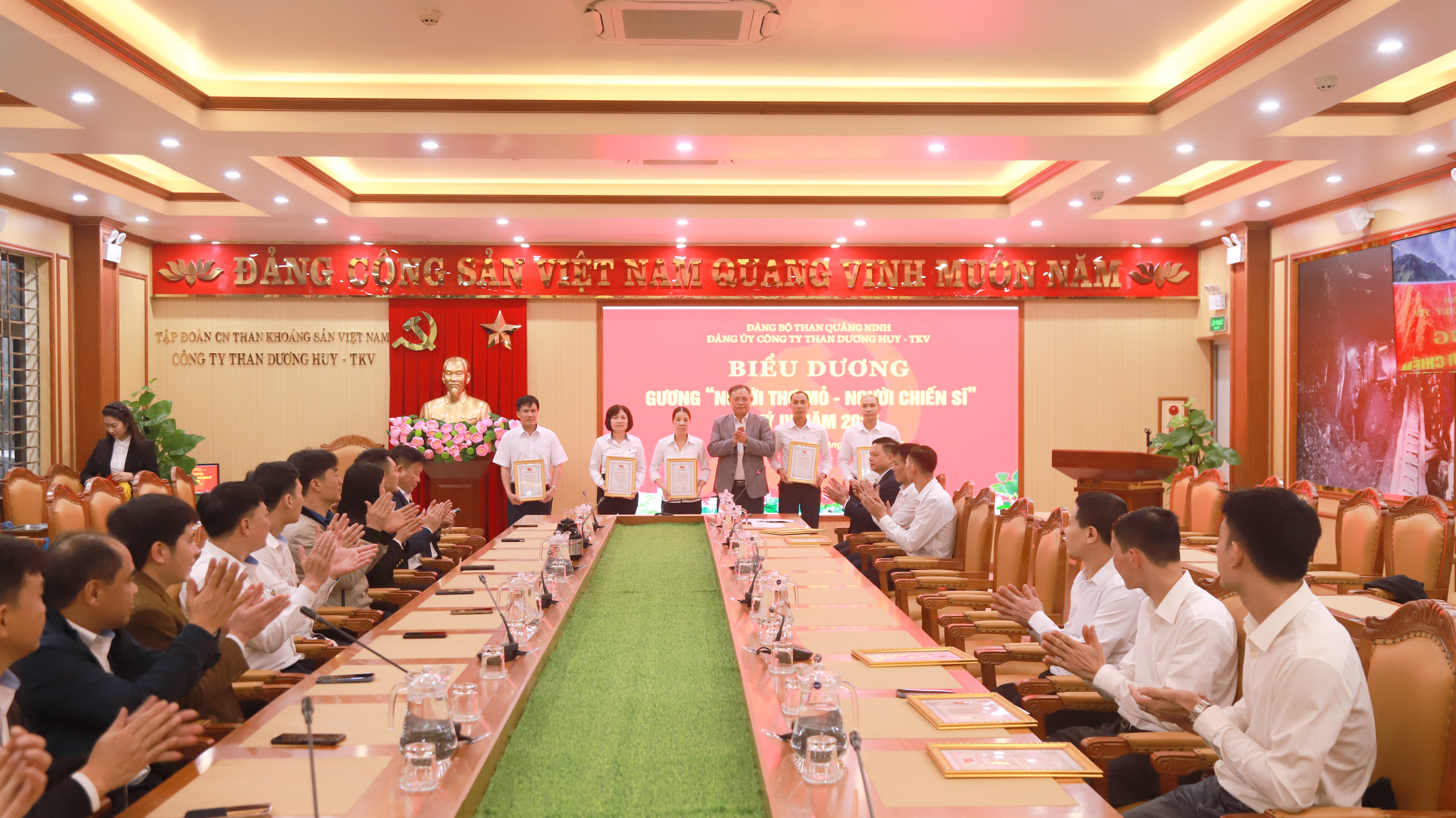 Những tấm giấy khen và phần quà thiết thực hôm nay không chỉ tôn vinh giá trị lao động, mà còn thắp lên ngọn lửa nhiệt huyết trong mỗi thợ mỏ. Tại Dương Huy, mỗi công nhân không chỉ là người thợ lành nghề, mà còn là một “chiến sỹ” kiên cường trên mặt trận sản xuất, góp phần xây dựng Công ty ngày càng vững mạnh.