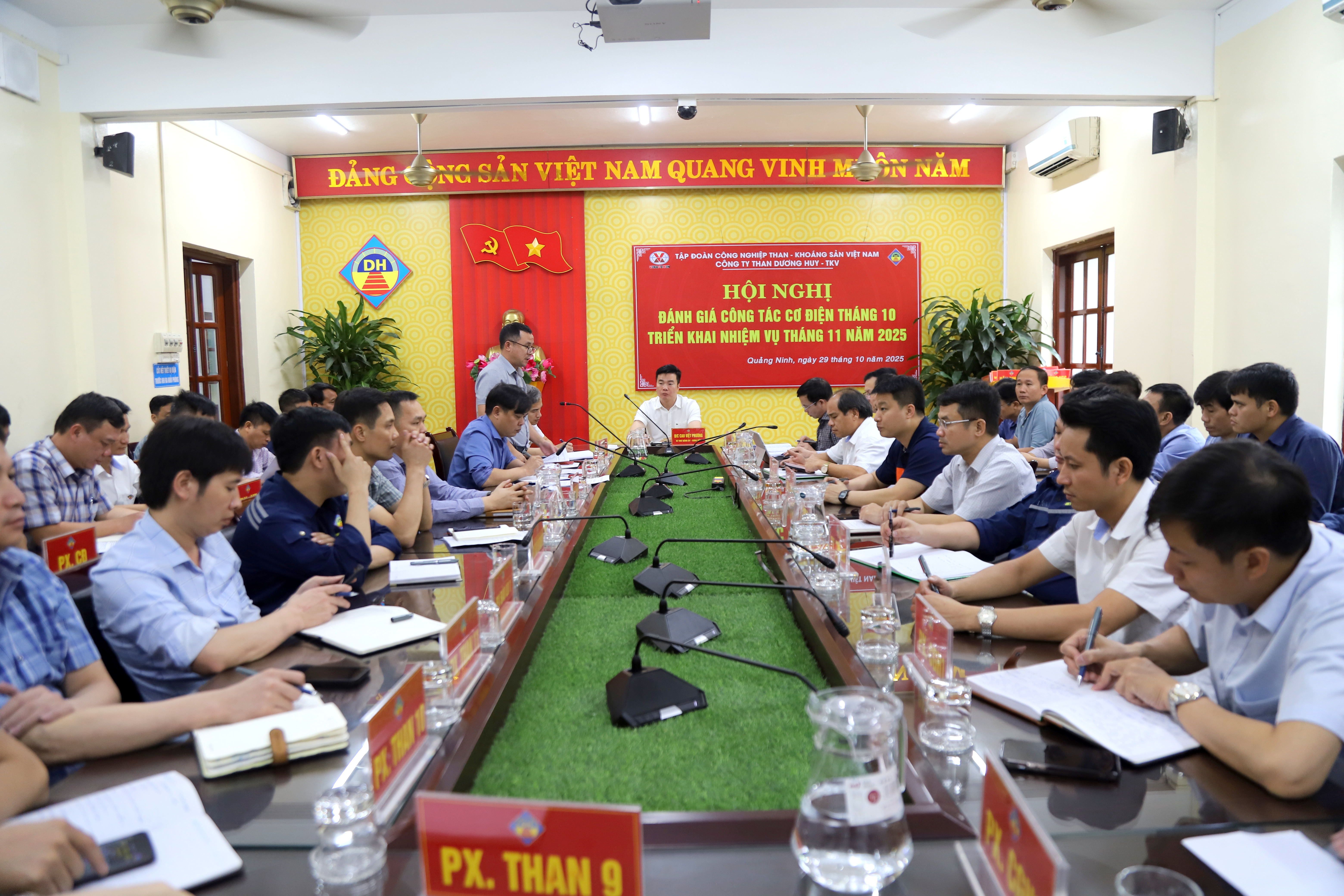 Trước những tồn tại đó, đồng chí Cao Việt Phương nhấn mạnh một số nhiệm vụ trọng tâm trong tháng 11, đòi hỏi cả hệ thống cơ điện từ phòng tới phân xưởng cần tập trung thực hiện triệt để, như: (1) Nghiêm túc chỉ đạo, thực hiện công tác thu hồi vật tư, thiết bị; (2) Làm rõ nguyên nhân, trách nhiệm liên quan đến các vụ sự cố trong tháng, đặc biệt quan tâm tới hoạt động của các tuyến băng tải chính. Thường xuyên kiểm tra, đánh giá và kịp thời xử lý nguy cơ hư hỏng để tránh ách tắc công tác vận tải; (3) Chuẩn bị đầy đủ vật tư, thiết bị cho chuyển diện; (4) Kiểm tra chuyên đề về điện, giảm thiểu tối đa sự có về điện. Đặc biệt liên quan đến khí, gió; (5) Chuẩn hóa các hệ thống cơ điện dưới mức -250, các vấn đề như điện, nước, khí, gió, thông tin liên lạc. Lập lộ trình thực hiện cụ thể, bài bản, lâu dài; (6) Lên kế hoạch chi tiết bảo dưỡng thiết bị dịp Tết Dương lịch 2026.